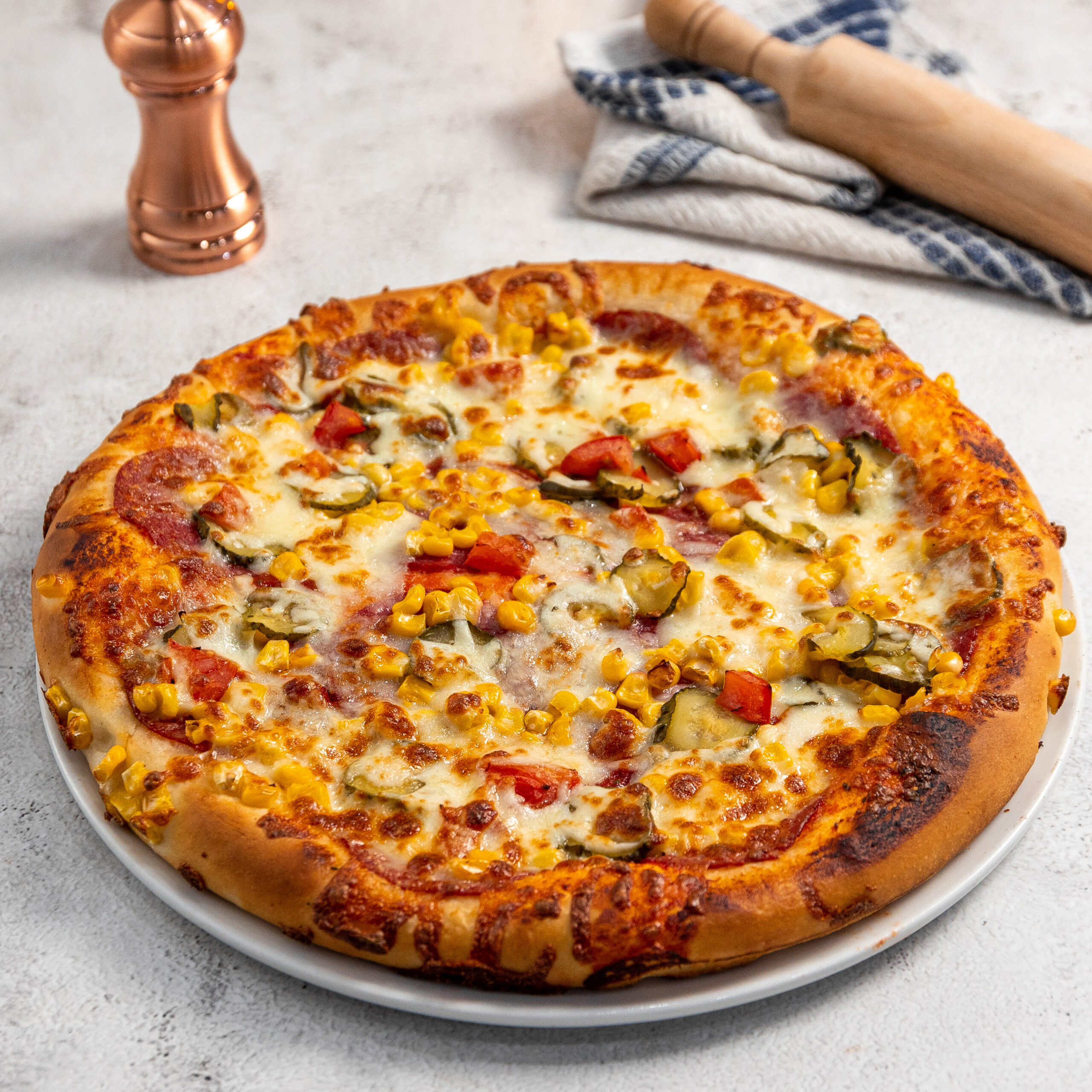 Feltétek: Kukorica, Mozzarella, Paradicsom, Szalámi, uborka3500 Ft